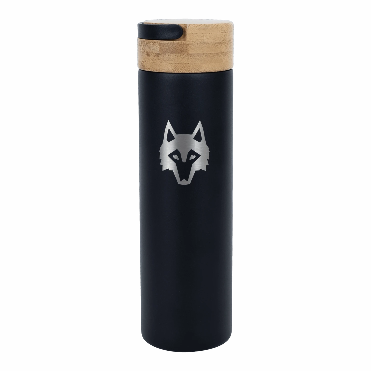 The 20oz Icon Traveler is the ultimate companion for hydration on the go. This triple-walled copper vacuum-insulated bottle features a convenient bamboo loop cap to comfortably carry on the go or attach to your bag. The functional design keeps drinks cold for up to 24 hours or hot for up to 14. It features a removable infuser to brew tea or naturally flavor water with fruit. Finished with the Icon Wolf on the front, this sleek traveler bottle will keep you hydrated wherever the journey takes you.