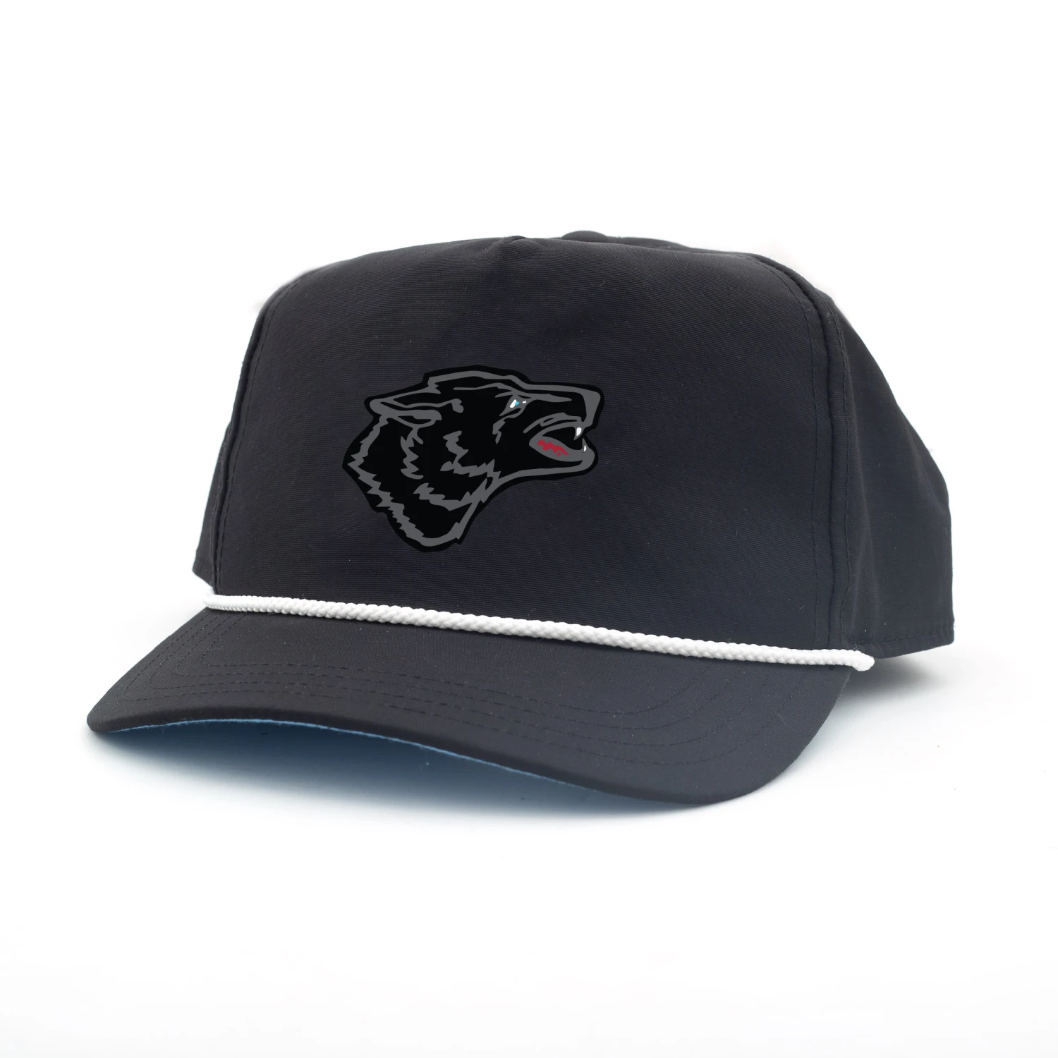 This Members Only rope hat is made from 100%Â nylon and features a rope detail on the brim and the Black Wolf logo on the front. This black hat is the perfect accessory that works just as well on the golf course as it does off. Designed with a flat brim for modern style.