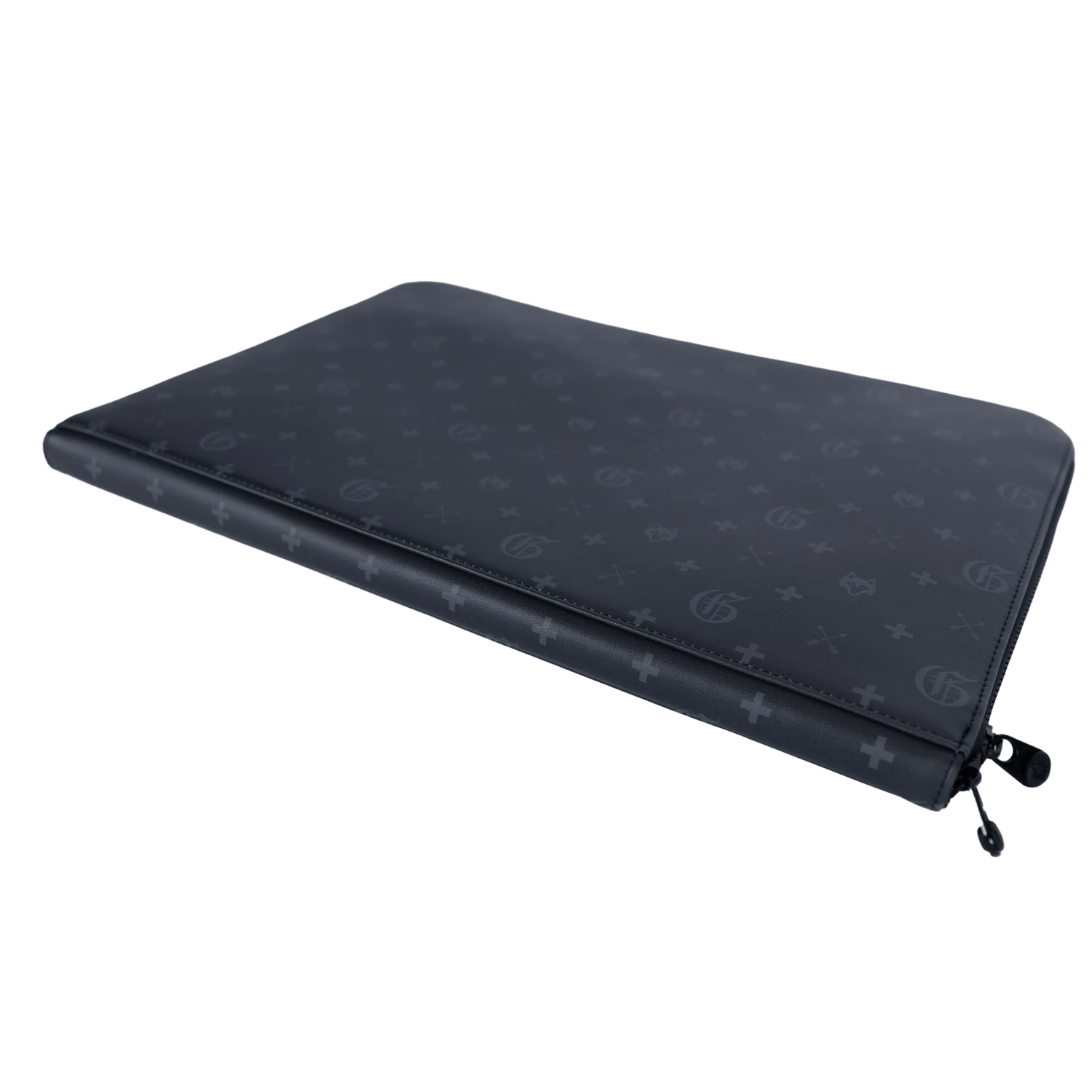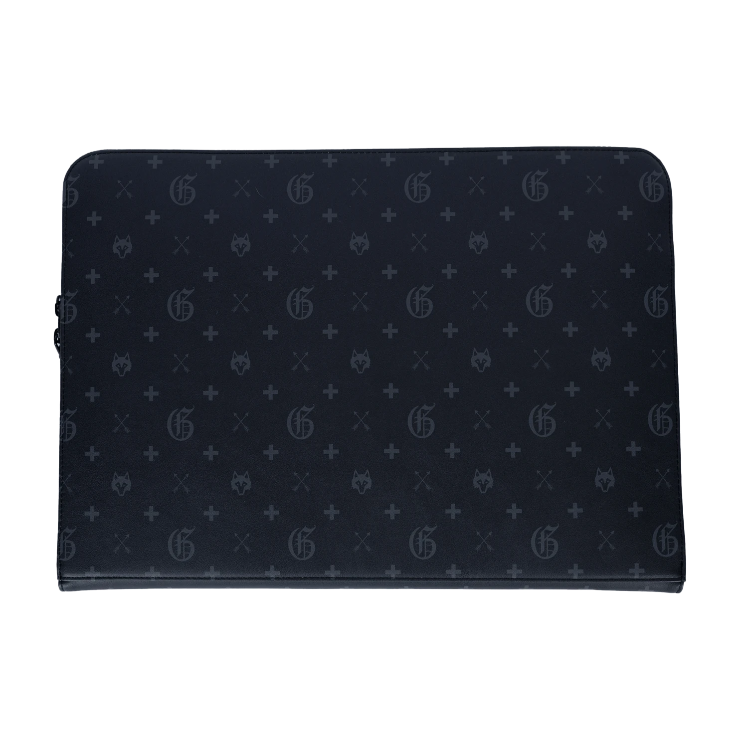 This elevated attache case ensures all your essentials are kept secure on the go. Designed with a zipper closure and a faux leather construction. Featuring the signature G.O.A.T. print throughout.
