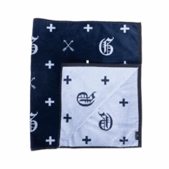 Incorporate the signature G.O.A.T. print to your next range session. Made to be soft and absorbent, this essential towel is the perfect accessory to carry with you on the gym, the court, and the golf course. Featuring a reversible design.Â