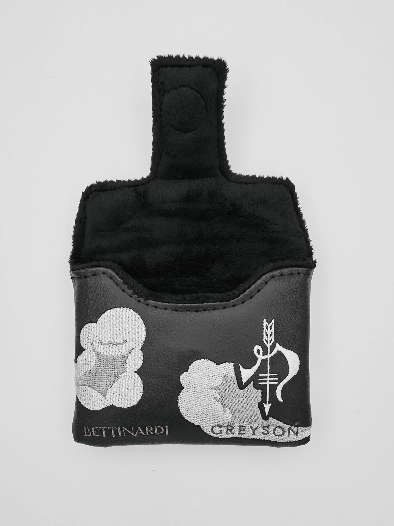 Constructed with a plush leather material, this Greyson x Bettinardi mallet putter cover is the perfect accessory to add a unique touch to your golf bag. Finished an embroidered 313-inspired design on the front and a soft interior for added protection. This product is part of the Ghost in the Straits limited capsule.