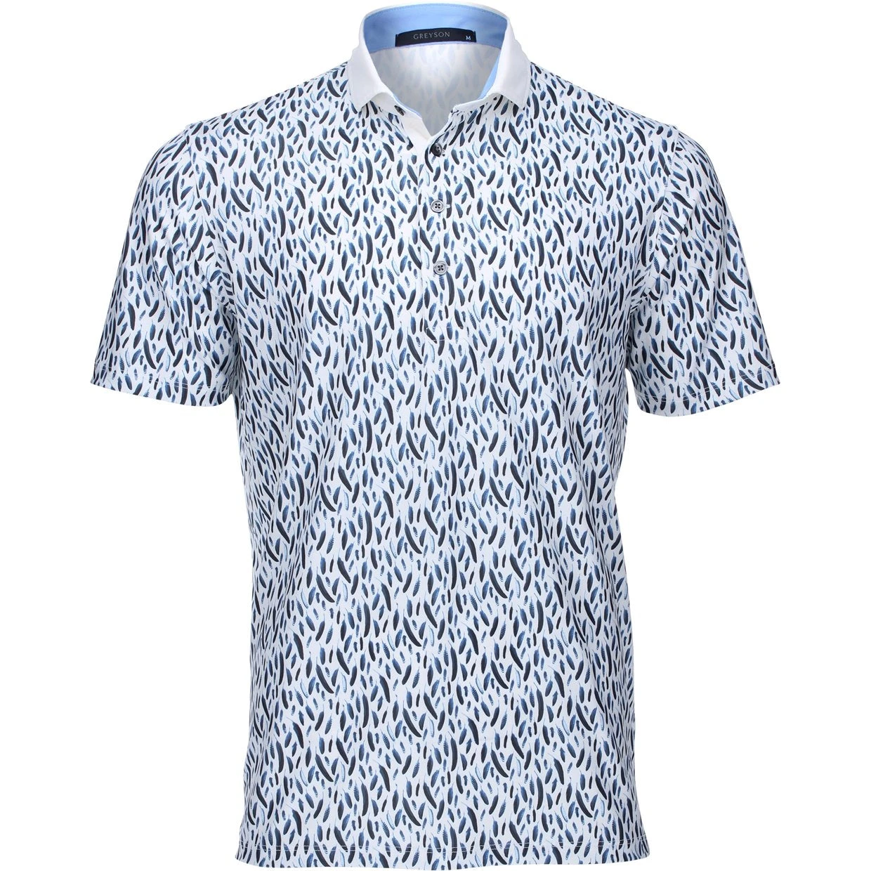 The Greyson Blue Bird polo is designed with button closure and features print detailing. This fashionable polo adds a little spice when paired with your solid bottoms. It features polyester stretch fabric that offers comfort, freedom of movement, durability for ample wash and wear, and resistance against shrinking and wrinkles.