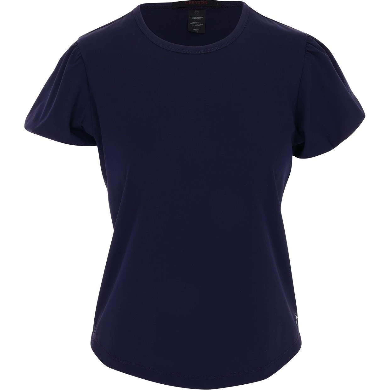 This fashionable top by Greyson features a crew neck and voluminous sleeves for a stand out look. Haelyn’s performance fabric offers sun lotion resistance, shape retention wear after wear, UV protection against harmful sunrays, breathability to prevent sweat build up, and 2 way stretch to keep you comfortable and moving with ease.