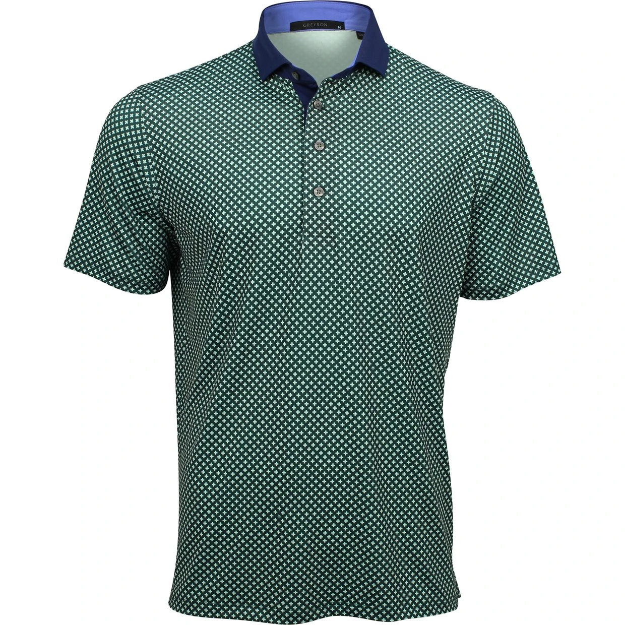 The Greyson Love And Loyalty polo is designed and created with print detailing a solid collar, and a hidden button placket. This sleek polo offers Airflow fabric that keeps the skin ventilated. The polo also provides stretch fabric so you can feel comfortable and move with ease during your round of golf. The Love and Loyalty polo is constructed with polyester, offering durability for ample wash and wear and resistance against any shrinking and wrinkles.