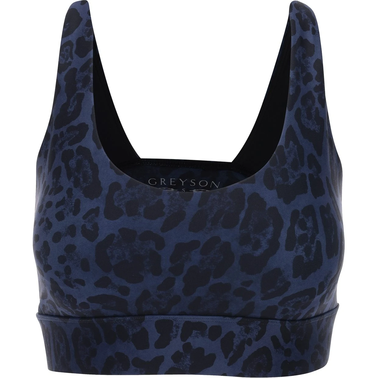 Greyson’s Luna Damisa Leopard Sports Bra offers high impact and a flattering look. It is made with performance fabric that is breathable as well as UV protected. In addition, the fabric offers 2 way stretch, shape retention and sun lotion resistance.