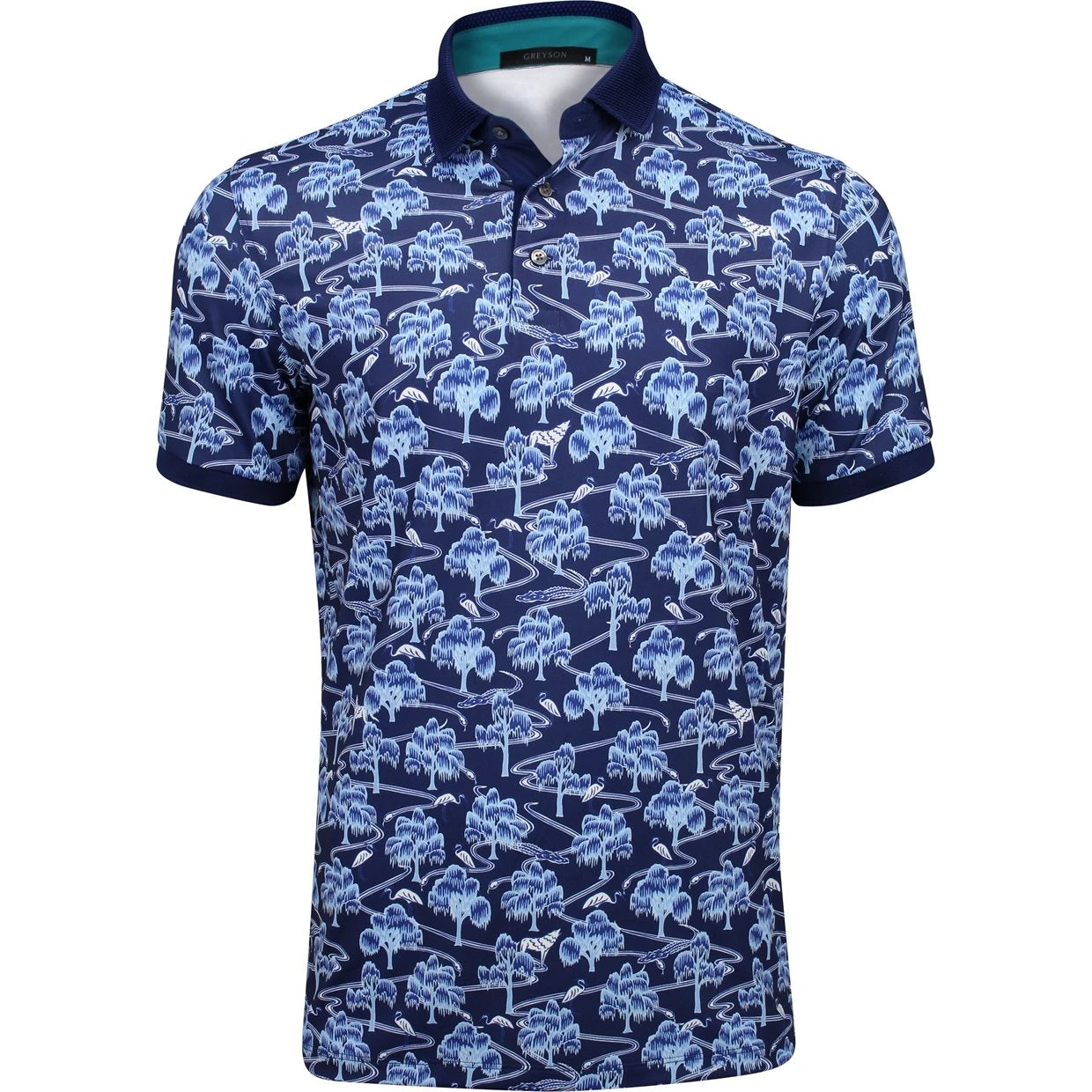 The Greyson Mystic Swamp polo offers a fashionable look and a comfortable fit. It is constructed with airflow fabric that keeps the skin ventilated and stretch fabric that allows easy movement during activities. The fabric is made from polyester, providing durability for machine washing with little to no shrinking. In addition, the polyester offers resistance against wrinkles for an easy care experience.