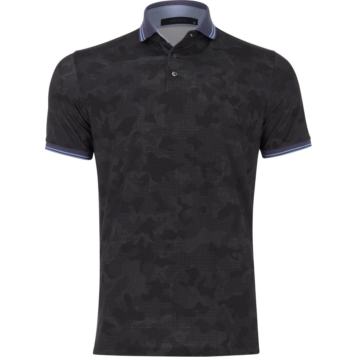The Greyson Saville Camo polo offers a fashionable design with camo print detailing, a yarn dye knit jacquard tipped collar, rib knit cuffs, and a contrasting 2 button English placket. It features performance fabric that is breathable, quick drying, and moisture wicking to keep the skin free from sweat build up. The fabric is also antimicrobial for a fresh smell throughout the day and UV protected to keep the skin safe from harmful sunrays. In addition, the fabric is built with stretch to keep you comfortable and moving with ease.