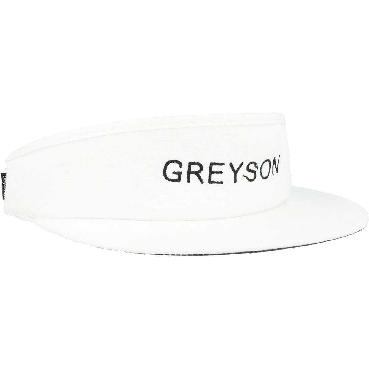 The Greyson Snake Tour Visor is now available with a custom Greyson Snake embroidery. Constructed with a 3 1/8? wide brim, white Terry sweatband lining, and finished with a polished buckle adjuster, this visor is perfect for the golf course or the tennis court.