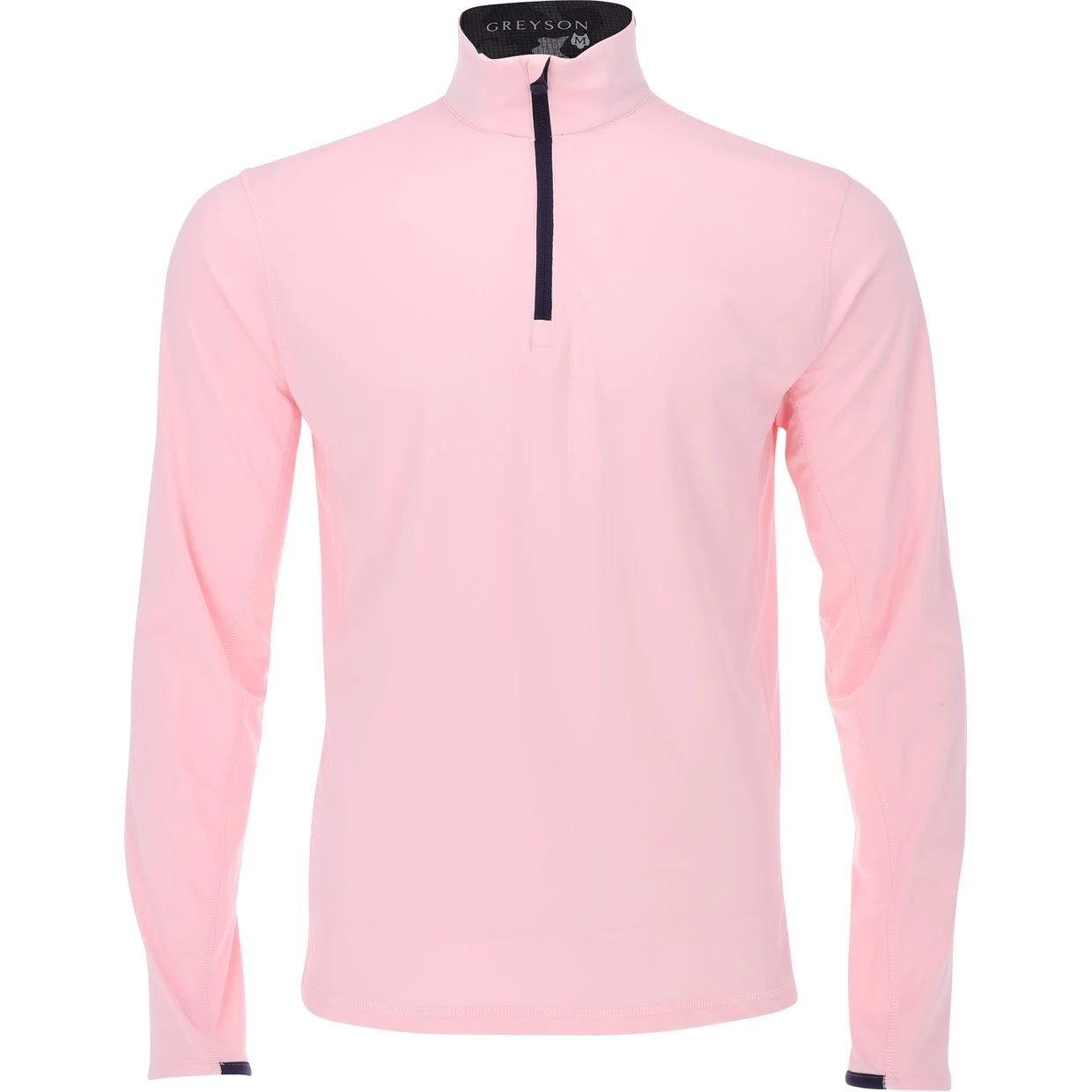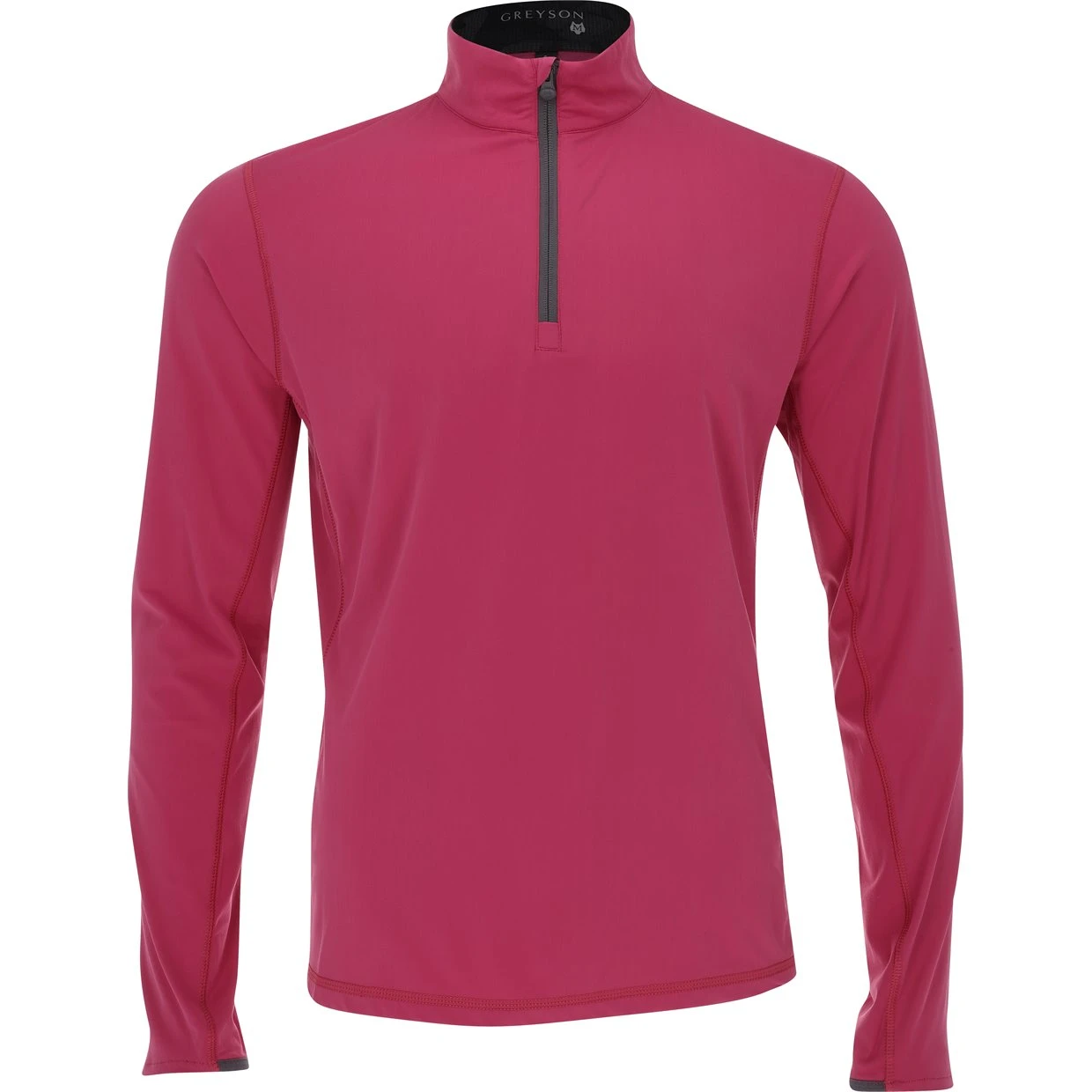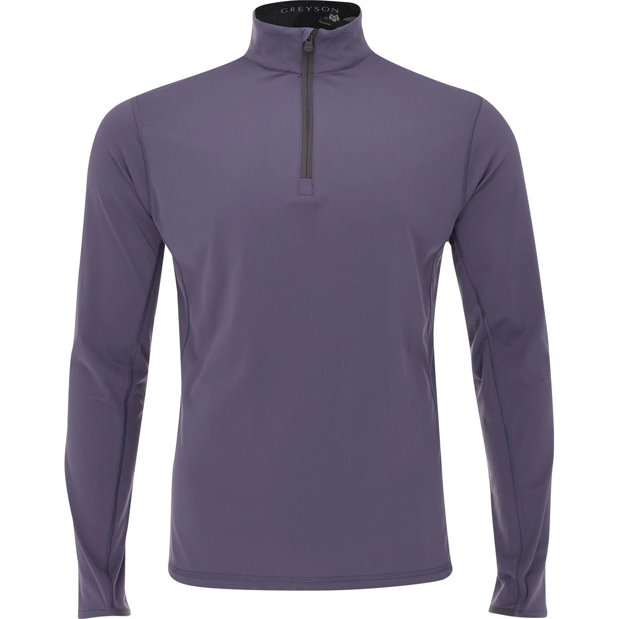 The Greyson Tate pullover keeps you warm, free from sweat build up, comfortable, and free to move. It is designed with a brushed back, a mock neck with perforation, and quarter zip closure for easy on and off wear.