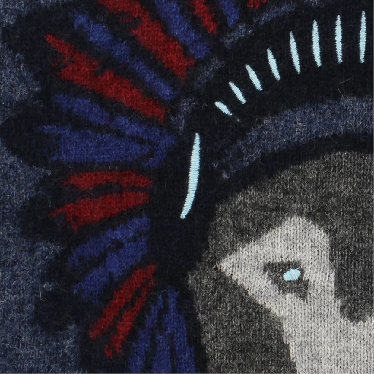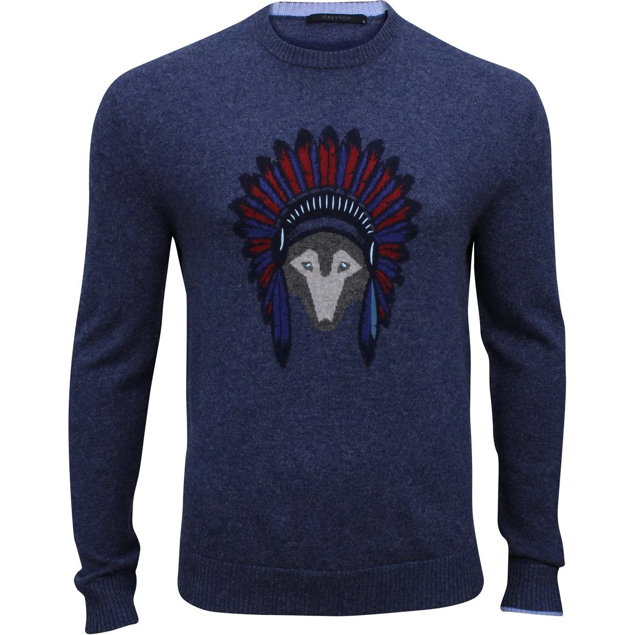 The Greyson Tribal Wolf Cashmere sweater is designed with a crew neck and features tribal graphic at the chest. It is made with blended wool that provides insulation for warmth, wrinkle resistance for easy care, and moisture repelling to prevent sweat build up.