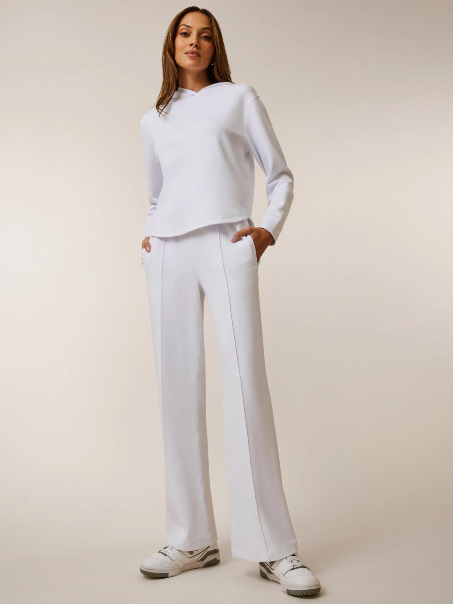 The must-have staple in every wardrobe, the Ojai Fleece Hoodie is crafted from a buttery-soft blend of cotton that keeps you light on the go. Designed with a flattering scoop hemline for a modern look. Finished with a classic kangaroo pocket, this elevated hoodie is an essential piece for the season.