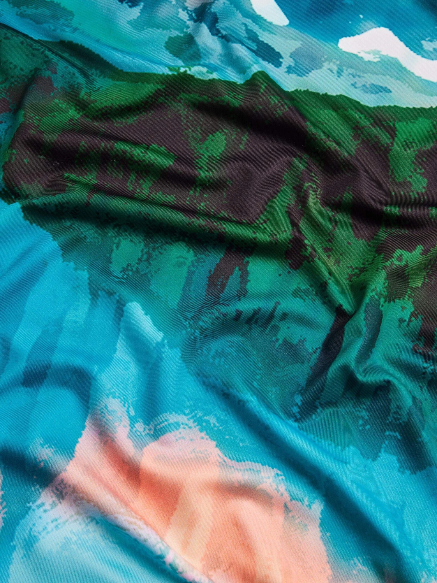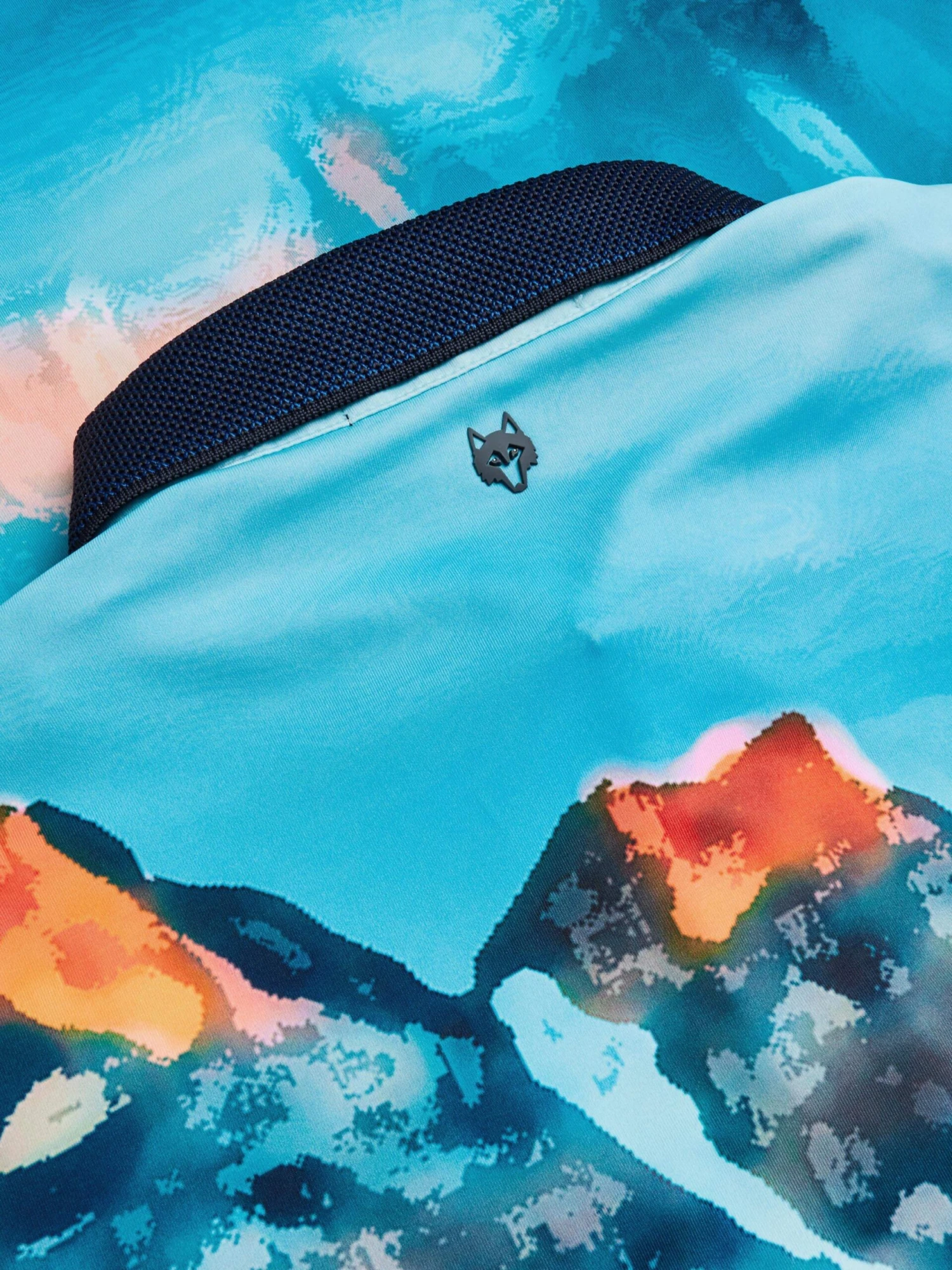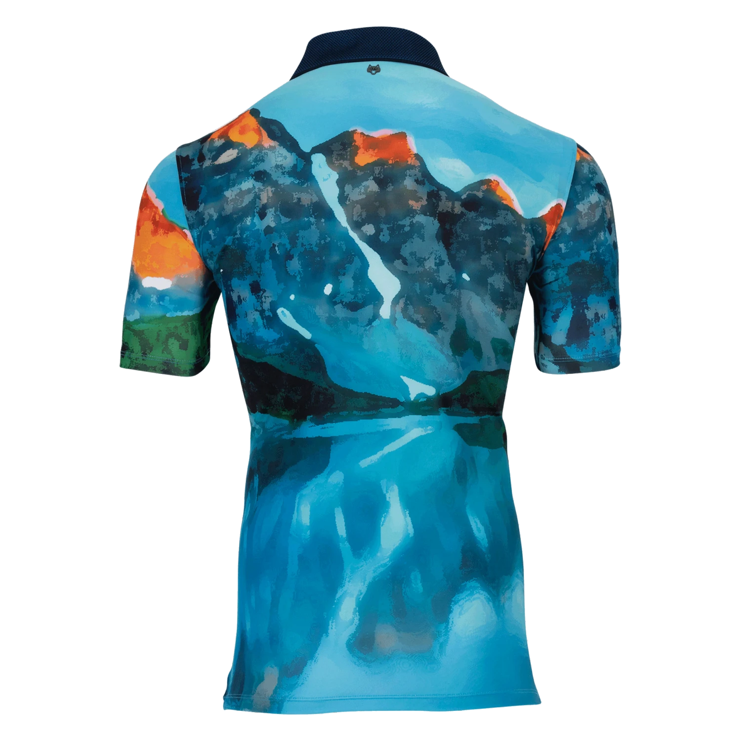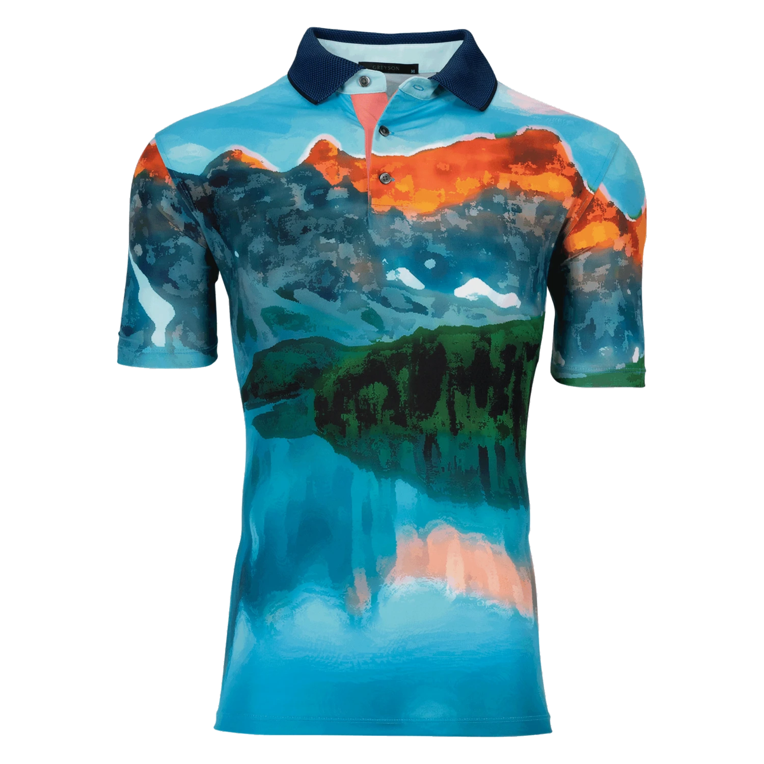 Designed with a painted scenes from Banff, this elevated performance polo delivers effortless sophistication on and off the course. Finished with a refined knit collar and a three-button placket.