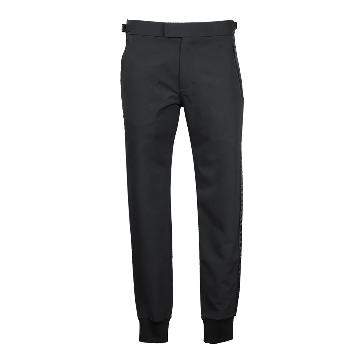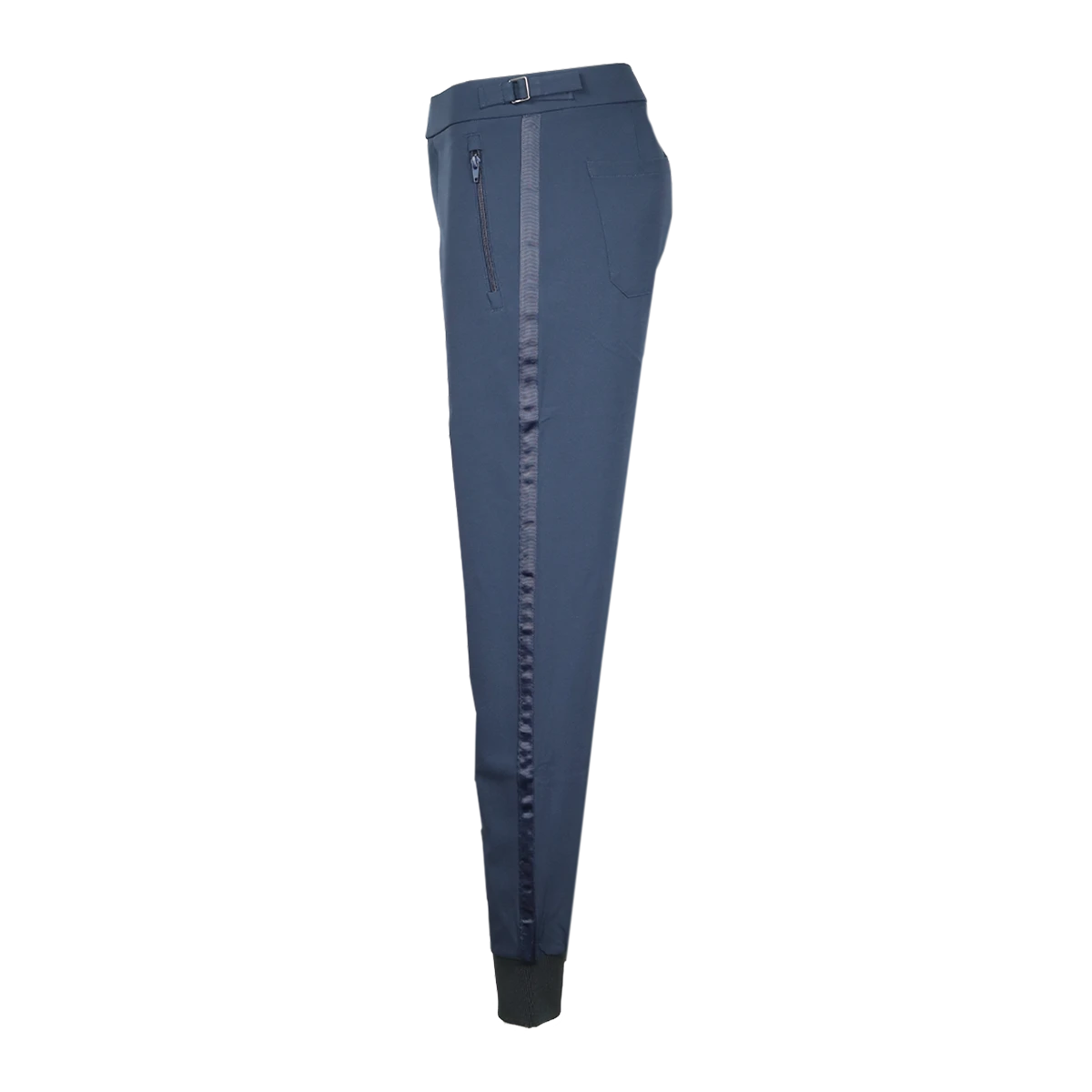 The Rumson Jogger provides the perfect blend of a lifestyle and golf jogger. Constructed with a fabric blend that prioritizes comfort, mobility, and performance. This jogger breaks away from the mold of the traditional golf pant as it features a self-waistband instead of the traditional belt loop. A classic tuxedo stripe on side seams makes this jogger suitable for even the most formal occasions. Comes with an applied back left pocket, camo-lined side pockets, and ribbed cuffs at the hem.