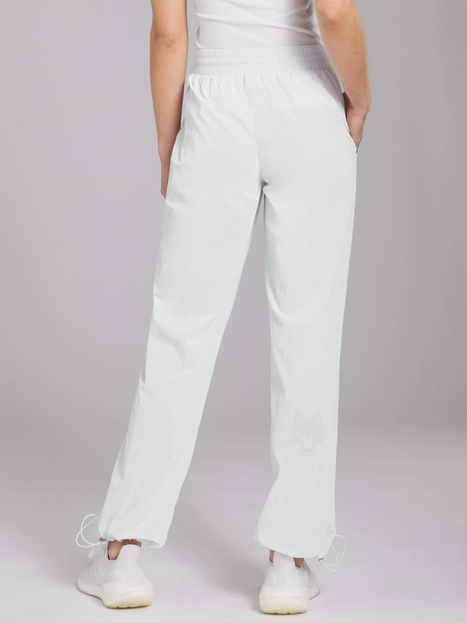 Made with a technical fabric that is windproof and water resistant, this ultra light jogger features a perforated Greyson wolf on the back leg. The waistband is built with added stretch for comfort.