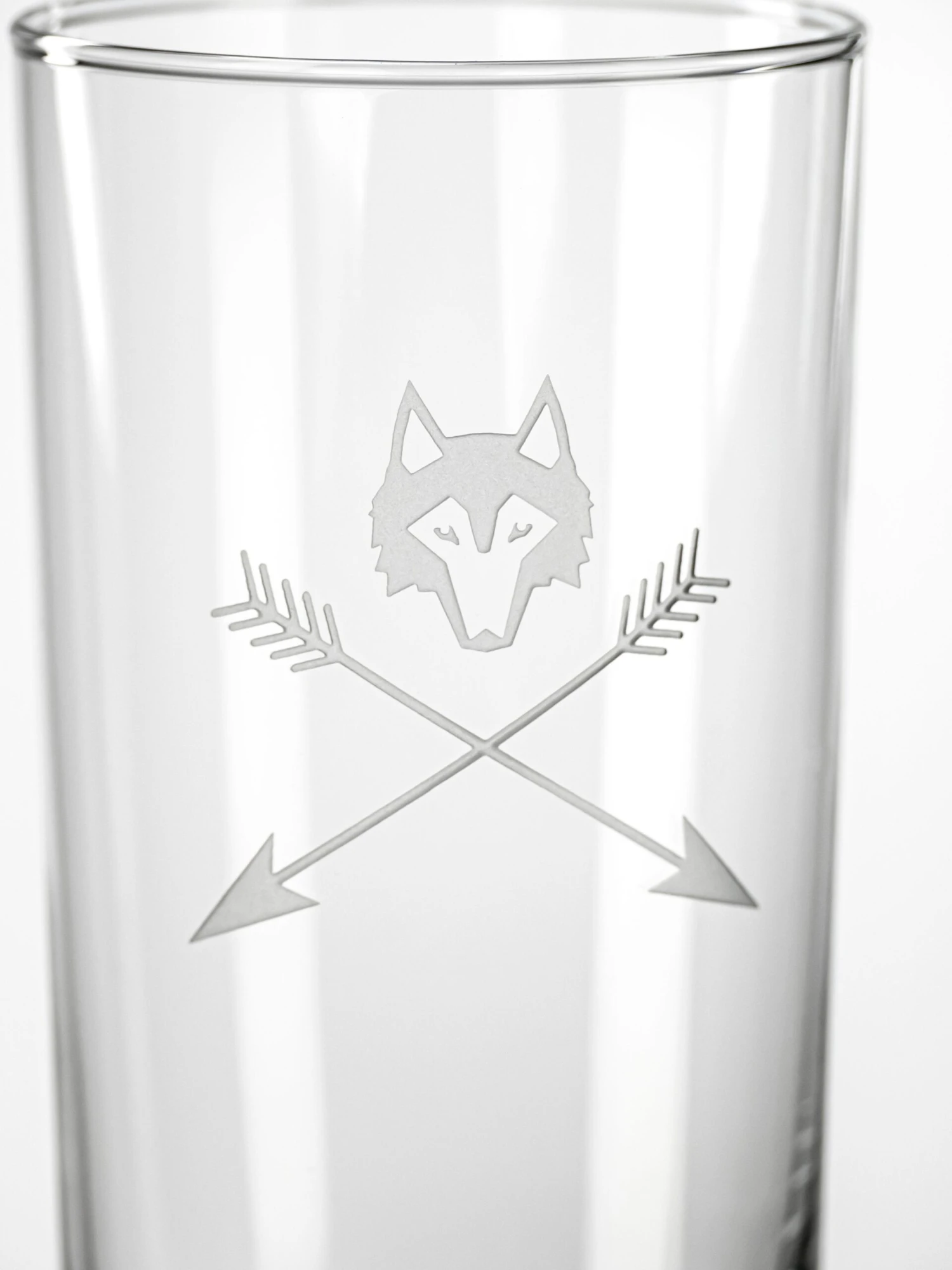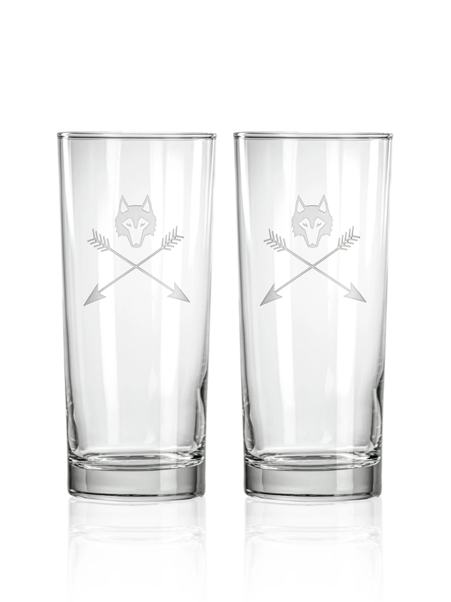 Modern and sophisticated, these signature highball glasses introduce an elevated touch for any occasion. Designed with the iconic Wolf and Arrows print.
